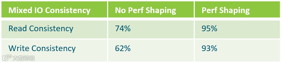 实际测试表明,启用性能整形后,读写一致性的提升分别为21%和31%。