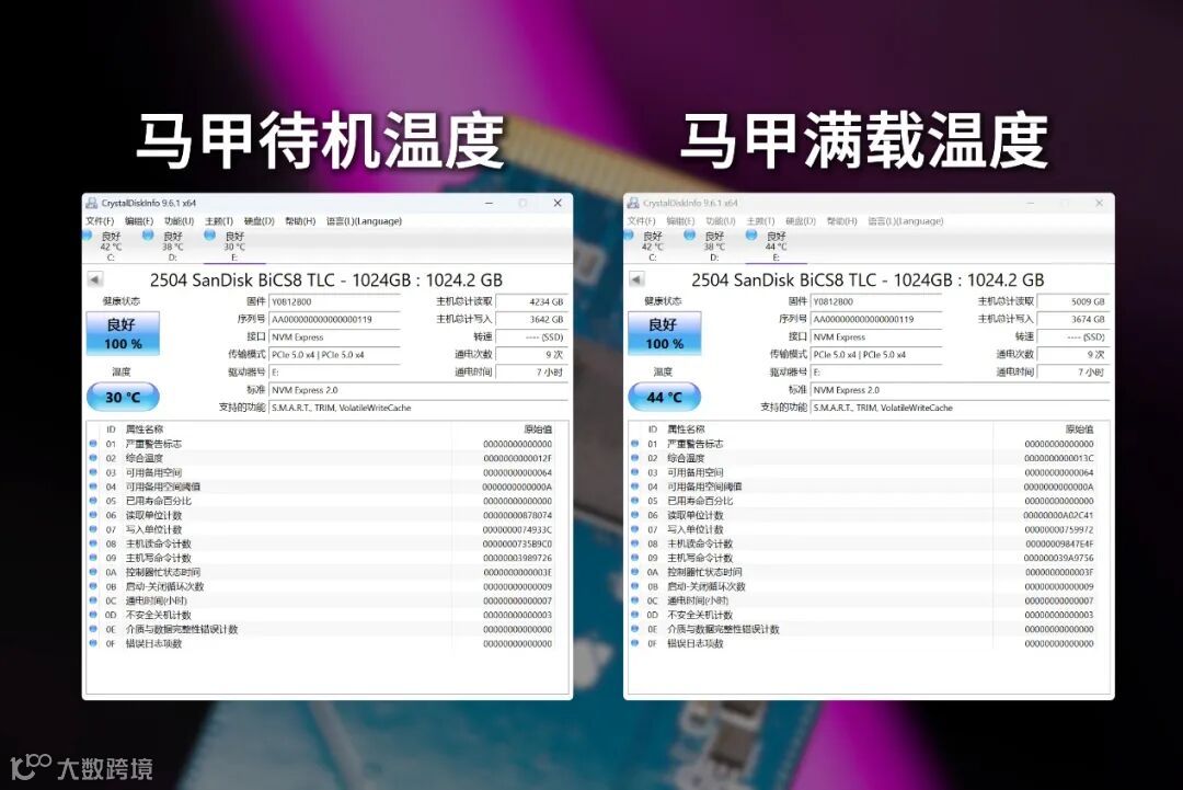 SM2504XT主控芯片的低功耗设计有效降低了发热压力,尤其简易安装辅助散热情况下,控温效果与稳定性大幅提升。