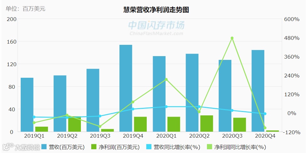 春节假期以前,慧荣科技公布2020年第四季度财报,季度营收达1.44亿美元,优于市场预期。全年财报表现也十分突出,营收达到5.4亿美元,年增长17%,按照non-GAAP会计准则,净利润高达1.14亿美元,年增27.5%。