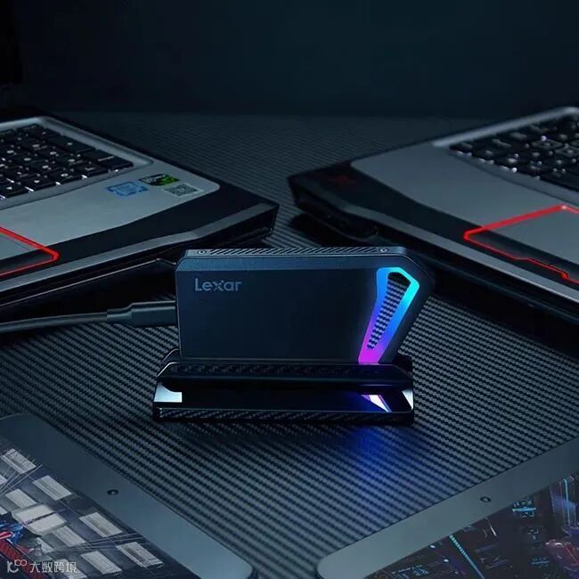 SL660作为Lexar雷克沙高端移动固态硬盘,整体采用简洁、锐利的设计语言,体现产品的高性能、坚固可靠的特性,搭配RGB流光炫彩的氛围光圈设计,给游戏玩家或桌面爱好者营造沉浸式游戏氛围。主体采用具有高散热效率的铝合金外壳,喷砂、阳极氧化的工艺处理使产品呈现出细腻的质感,黑亮边缘则采用CNC切割、二次氧化处理,使产品外壳与边缘形成亮、哑对比的精致效果,棱角分明的造型特征让你在任一使用场景中都能凸显身份的个性化,使产品真正做到电竞美学与精致工艺融为一体。