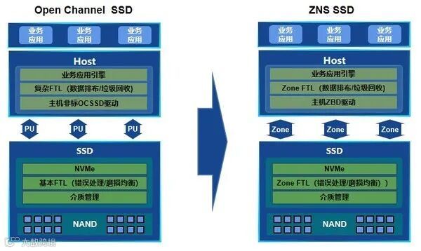 更新的ZNS SSD则是由Open Channel SSD发展而来,继承了Open Channel优点的同时并进一步发展。将Namespace的逻辑地址空间切分成多个Zone,按顺序进行写入,大幅缩减了整盘的写放大,并且无需进行垃圾回收,将会大幅增加SSD的使用寿命。