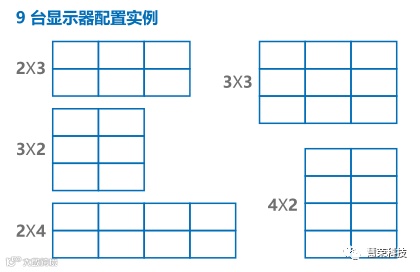 例如,用户已经通过慧荣视频墙解决方案配置了一个阵列为3x3的视频墙,由一个10端口的视频墙盒进行驱动,通过解决方案提供的软件,可随意更改阵列为2x3、3x3及2x4等多种形式,并且不用对视频墙的配置做任何更改。