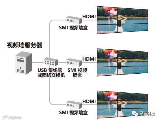 在拥有以上出色实际应用表现之外,低系统成本同样也是优势之一。慧荣科技软件可在任何标准的PC或者服务器上运行;内容服务器和视频墙盒之间通过低成本的USB 3.0进行链接;视频墙阵列需要扩展,在保留已有视频墙盒的基础上额外添加视频墙盒即可,不需要整套设备进行更换。