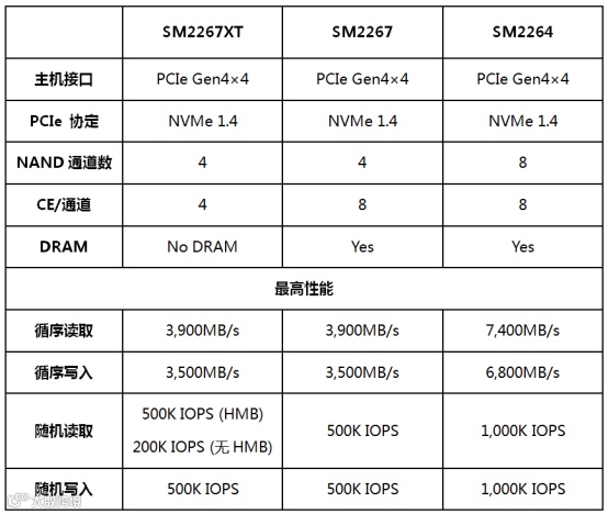 针对主流和入门级 PCIe Gen 4的解决方案:SM2267 支持Gen4 x 4 通道、4 个 NAND 通道设计;SM2267XT支持Gen4 x 4 通道、4 个 NAND通道、DRAM-less