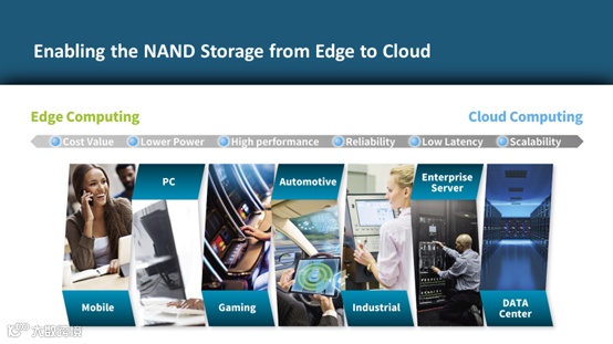 NAND Flash技术给存储市场带来了更多可能,最高可达192层的3D QLC Flash让固态硬盘容量更大,逐年下降的NAND Flash价格也让更多的应用可以升级到速度更快的固态硬盘。从边缘端的手机、个人电脑、车载系统再到云端的数据中心和企业服务器,NAND存储正在不断的发展壮大。