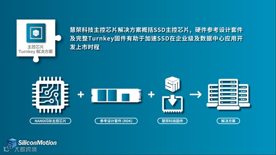慧荣科技主控芯片解决方案概括NAND闪存主控芯片、硬件参考设计套件(RDK)及完整Turnkey固件等统包方案,有助于加速SSD在企业级及数据中应用开发上市时程。
