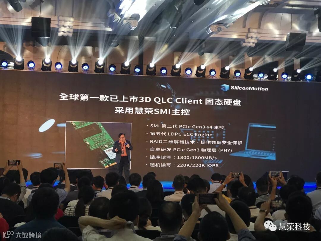 慧荣科技总经理苟嘉章先生进行了以《慧荣存储核心技术与拓展新兴市场》为题的主题演讲,展示了在主控芯片市场取得的成绩,在过去4年里慧荣嵌入式主控芯片销售13亿颗;在SSD方面,慧荣起步较晚但成绩非凡,最近3年出货量近1.5亿颗,为了应对原厂3D NAND技术的发展,已有QLC SSD搭载了慧荣的主控