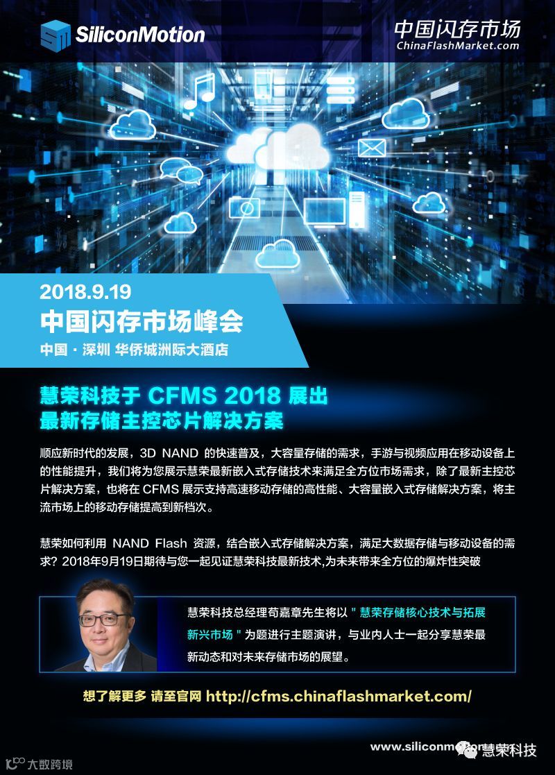 导读:慧荣科技总经理苟嘉章先生将登台以“慧荣存储核心技术与拓展新兴市场"为题分享慧荣在中國市場上的耕耘。