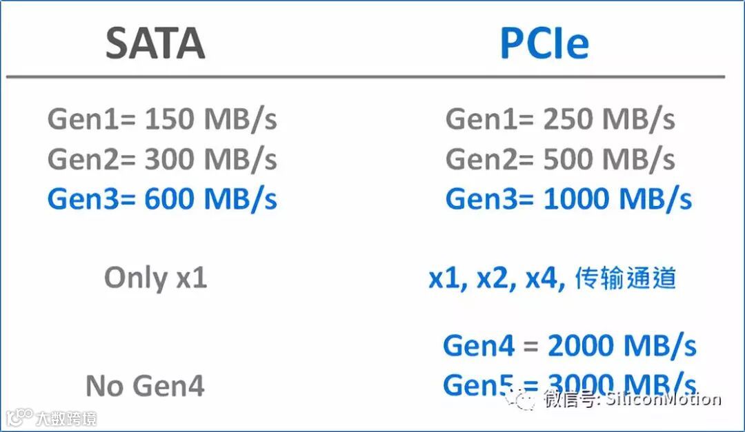 以下圖是SATA與PCIe的data rate 传输速率:
