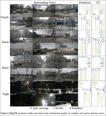 2022年,华中科技大学Vision Lab与地平线合作,共同提出了矢量高精地图在线实时构建方法MapTR。其对地图要素进行结构化建模,将地图元素表征为一组等效排列的点集,消除表示上的歧义性,降低模型的学习难度。同时,采用分层查询向量来编码地图结构化信息,可对点信息和实例级信息进行灵活编码。