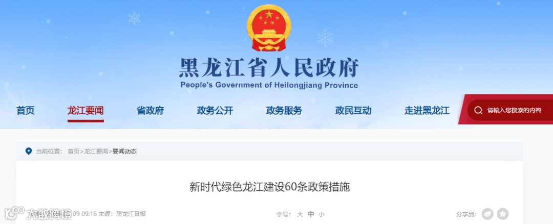 《新时代绿色龙江建设60条政策措施》已经省委、省政府同意,现印发给你们,请结合实际认真贯彻落实。