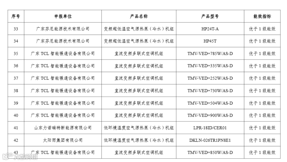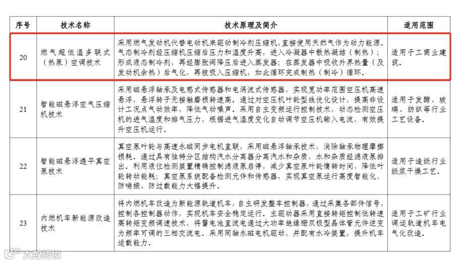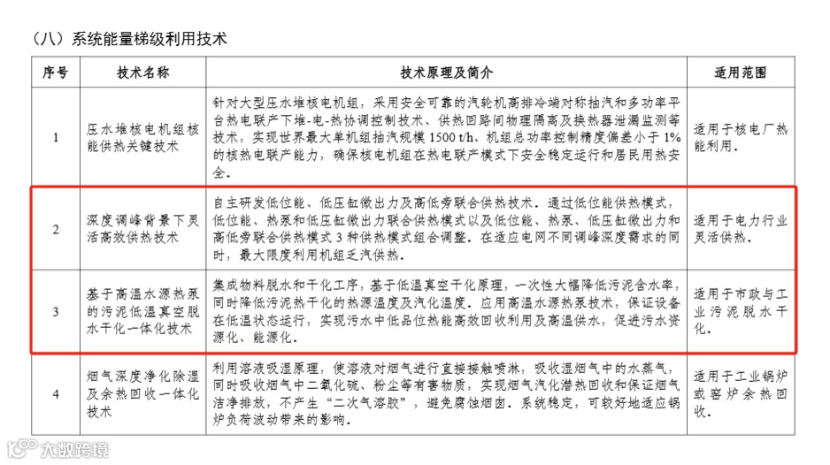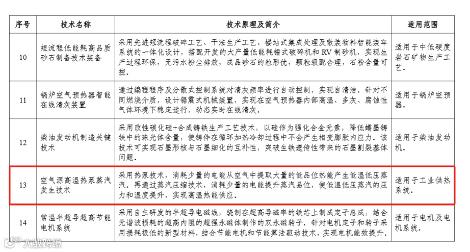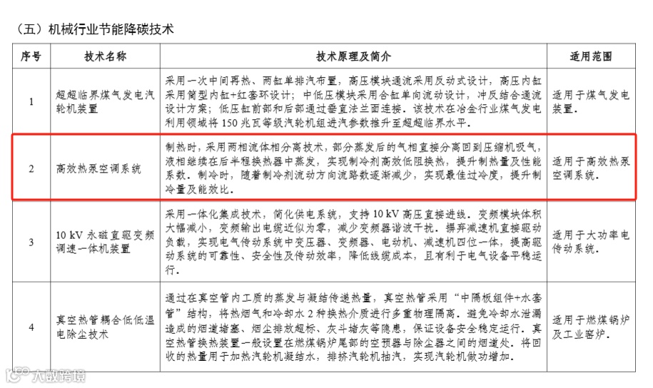 热泵技术、装备入选部分摘录: