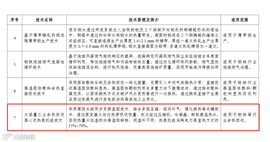 4月30日,国家工业和信息化部发布《国家工业和信息化领域节能降碳技术装备推荐目录(2024年版)》公示。目录涉及工业节能降碳技术、信息化领域节能降碳技术以及高效节能装备。其中,工业节能降碳技术目录中,多项热泵相关技术入选钢铁行业节能降碳技术、机械行业节能降碳技术、系统能量梯级利用技术目录。高效节能装备目录中,多项热泵产品入选工业制冷设备目录。