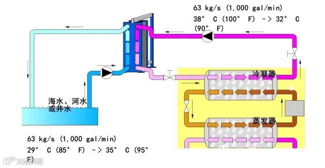 海水、河水、或井水冷却凝结水