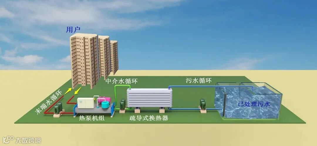 污水源热泵是利用污水处理厂出水量大,水质稳定,常年温度在13至25摄氏度等特点,以污水作为热源进行制冷、制热循环的一种空调装置。污水源热泵具有热量输出稳定、COP值高、换热效果好、机组结构紧凑等优点,是实现污水资源化的有效途径。污水源热泵比燃煤锅炉环保,污染物的排放比空气源热泵减少40%以上,比电供热减少70%以上。它节省能源,比电锅炉加热节省2/3以上的电能,比燃煤锅炉节省1/2以上的燃料。由于污水源热泵的热源温度全年较为稳定,其制冷、制热系数比传统的空气源热泵高出40%左右,其运行费用仅为普通中央空调的30%—55%。因此,污水源热泵有着广阔的应用前景。