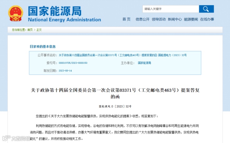 近日,国家能源局针对《关于大力发展热储能电能智慧供热,实现供热电能化的提案》的政策建议进行答复,答复中提到:鼓励在电力资源充足地区,综合运用各类热泵、高效电锅炉等多种方式推进电供暖,积极发展电供暖与蓄热相结合供暖模式,鼓励建设具备蓄热功能的电供暖设施,促进风电和光伏发电等可再生能源电力消纳。
