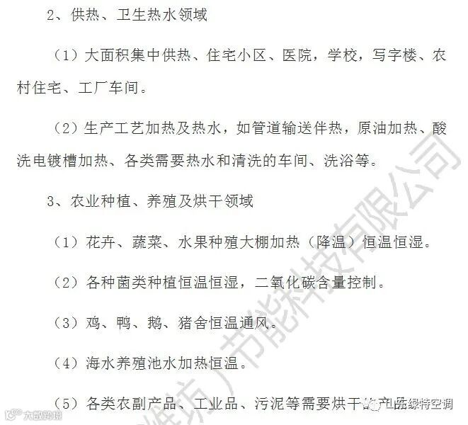 1、大面积集中供热、住宅小区、医院,学校,写字楼、宾馆酒店、别墅、农村住宅、工厂车间。
