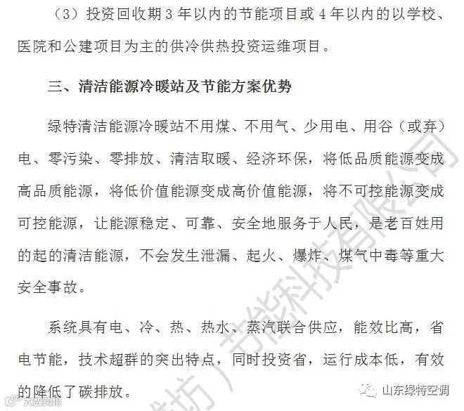 3、投资回收期三年以内的节能项目或4年以内的以学校、医院和公建项目为主的供冷供热投资运维项目。