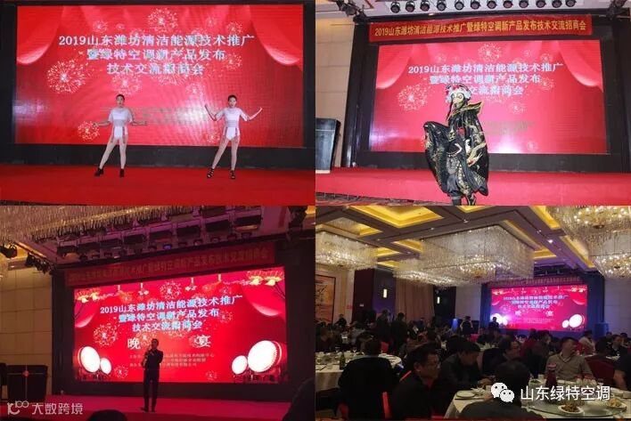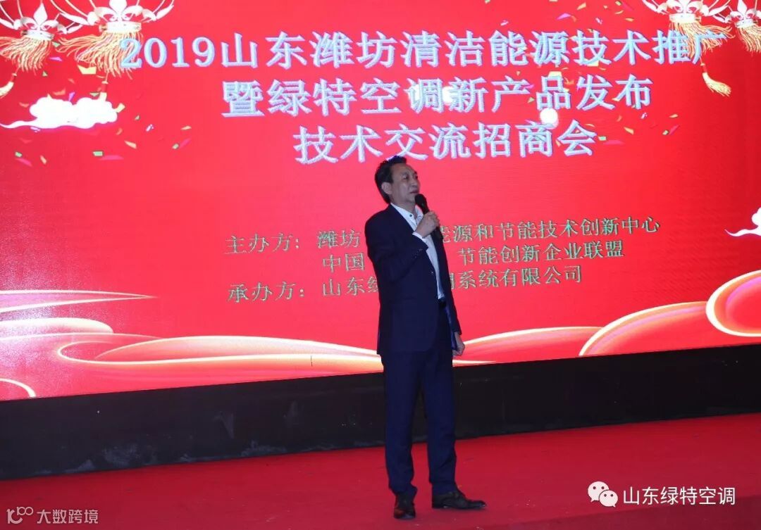 2019年3月8日,由潍坊市清洁能源和节能技术创新中心、中国(潍坊)节能创新企业联盟主办、山东绿特空调系统有限公司承办的“2019山东潍坊清洁能源技术推广暨绿特空调新产品发布技术交流招商会”在潍坊华美达广场酒店隆重举行。全国各地的嘉宾、经销商、环保企业及行业工作者共400余人齐聚一堂,以“节能环保、煤改清洁能源”为主题,就冷暖行业的前沿技术进行分享及探讨。