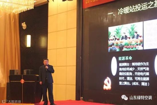 上午9点,大会隆重开幕,首先由潍坊市节能监察中心张旭东主任做大会开幕致辞,对现场各位嘉宾的到来表示热烈的欢迎。随后绿特空调王泽富王总就《清洁取暖(供冷)技术路径与多能互补》为主题做了深入的讲解。王总从清洁取暖概况、清洁取暖技术、清洁取暖方案和多能互补方案四个方面进行了详细的介绍,并对行业的发展趋势进行了展望,绿特将以自身为主导,不断进行科技研发创新,提升竞争力及品牌影响力,为清洁冷暖行业更快更好的发展做出更多贡献。
