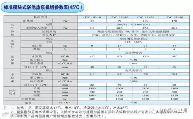 7、绿特大温差污水源热泵:综合热水费用一般可以控制在5元/吨,用的越多省的越多,并且在夏季可以免费提供制冷空调供部分场所制冷,大温差热泵机组采用多流程设计,外形小,适合新建及改造浴室的热水供应系统。