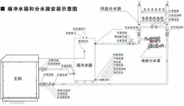 当系统中补水一半时,调试就可开始了。流入主机与水泵的水,均是纯净不含气的,热量会很快输送到末端,调试时间大大减少。笔者早期从事空调施工,调试一户别墅,没有三到四小时不能结束,因为水中含气太多,流量开关经常报警,主机换热不够也会高压保护,风盘气堵后,效果不明显。都让调试时间大大延长。在有缓冲水箱的机房系统,一般一到二小时即可完成调试工作。