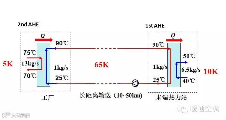 用吸收式热泵构成吸收式换热器,实现低品位热量的长距离输送