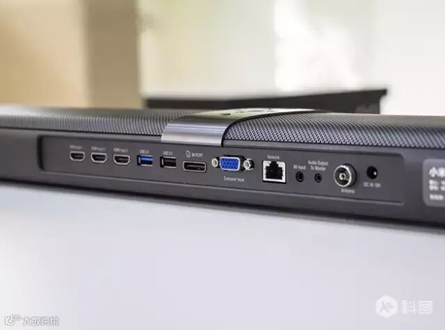 机身背部方面,其配备的接口也是的相当丰富。除了小米特有的的“米线”接口外,还有3个HDMI接口、2个USB接口(其中一个是USB 3.0)、VGA接口、网线接口、AV、电视RF接口。同时,原厂附赠的配件也很齐全。