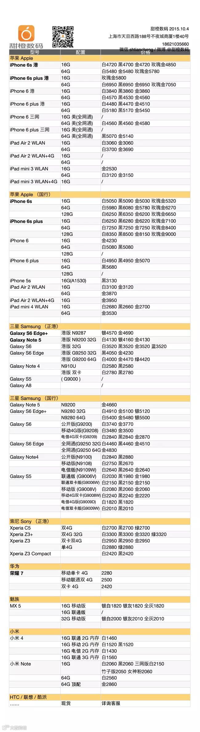 iPhone 6s 及 6s plus 港版大幅度降价,之前最夯的玫瑰金跌幅最大达 300,各种颜色都非常接近合理价位里;iPhone 6 及 plus 也有小幅松动,之前长期缺货的美版三网机大量到货;三星 Galaxy S6 Edge+ 和 Note 5 价格走低,S6 价格稳定。