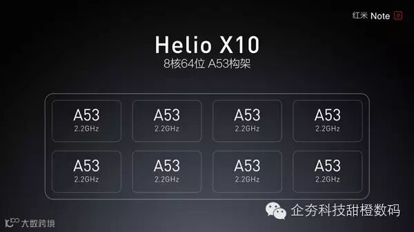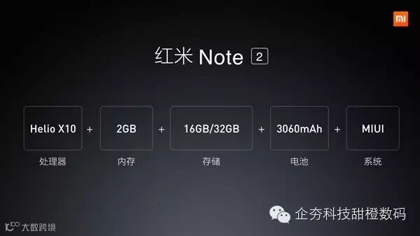 在今天下午的秋季新品发布会,小米正式发布了红米家族的新成员——红米Note 2。众所周知,红米系列一向以出色的性价比抢占市场,而全新发布的红米Note 2更是定位“千元旗舰”,在硬件性能方面丝毫不含糊。官方给出的信息显示,红米Note 2搭载了来自MTK Helio X10处理器,这款处理器有着8个64位 A53构架核心主频可以到达2.0Ghz/2.2Ghz。