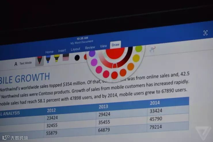 现场请来了微软副总裁进行Office套件的演示,借助于iPad Pro的分屏功能和触控笔,iPad Pro的生产力得到了飞跃性的进步。此外另一软件巨头Adobe也在现场演示了如何制作PDF以及用Photoshop Fix进行修图。