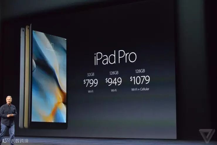 iPad Pro具备金色、银色、灰色三种颜色,容量分为32GB/64GB/128GB。售价分别为799美元、949美元和1079美元,今年11月上市。