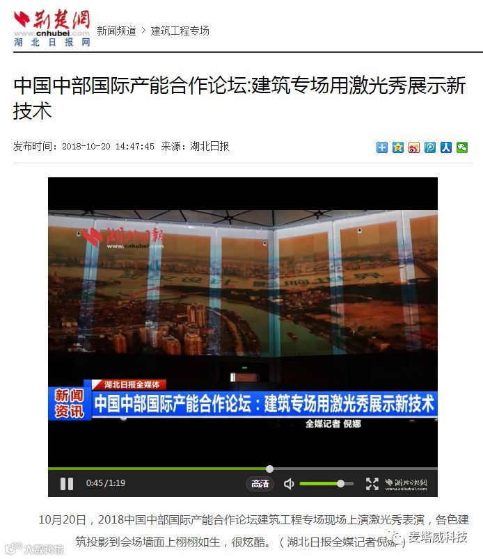 本次长达8分钟的沉浸式建筑主体光影秀,是由麦塔威团队为本次2018中国中部国际产能合作论坛建筑工程专场量身定制、倾力打造的。