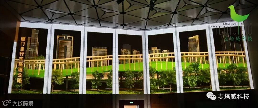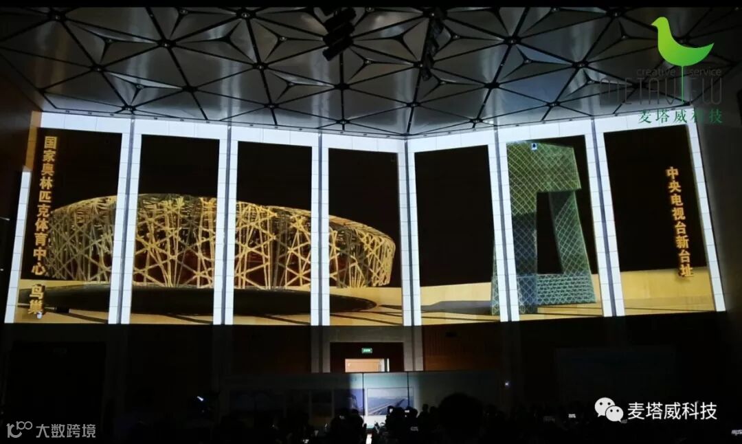 采用全球领先的裸眼3D全息投影技术,辅以多投影边缘拼接融合技术、影响矫正匹配技术、多媒体集中控制技术,结合现有空间设计,注重科技与艺术融合,以三维空间的翻转、拉伸、扭曲等千变万化的光影特效来引领嘉宾以一种全新的方式发现建筑之美!