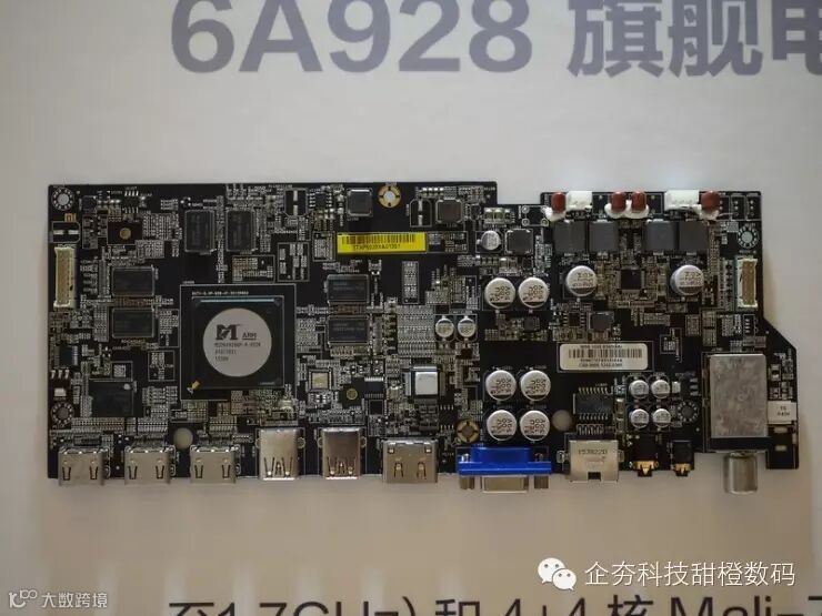 现场也展出了小米电视3的一些内部结构,图为6M60专业图形处理芯片,支持MEMC运动补偿。