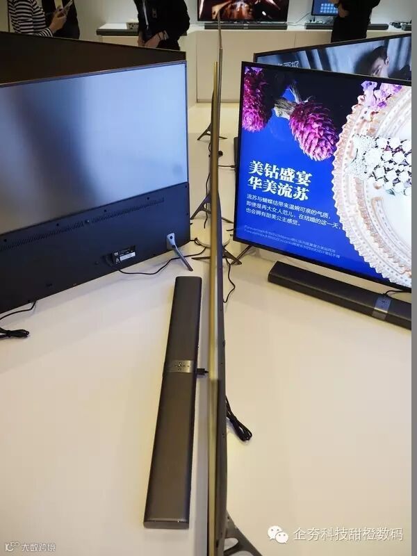 电视主机和音响系统集合在一起,由于音腔比较大,所以看起来要比小米电视2的音响体积大很多。