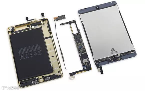 缩减机身厚度最常见的手段还有使用更轻薄的部件。比如iPad mini 4使用了比前代更薄的前置摄像头和电池组件,其电池容量由iPad mini 3的6471mAh降到了5124mAh,不过据苹果官方公布的数字,其续航时间并没有缩水,和前代同样为10小时,这应该是得益于iOS 9对电池续航的优化。