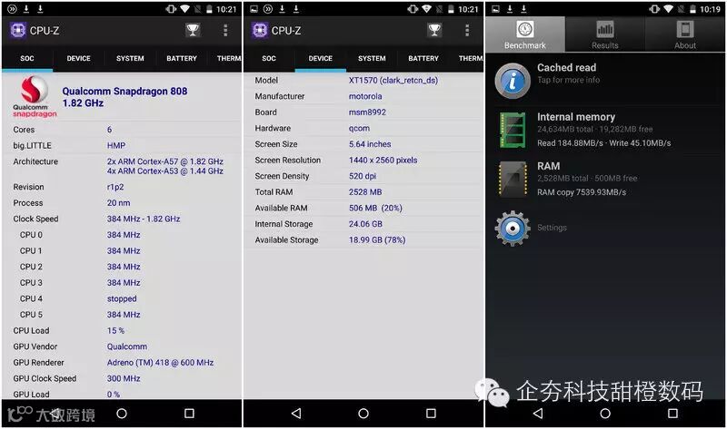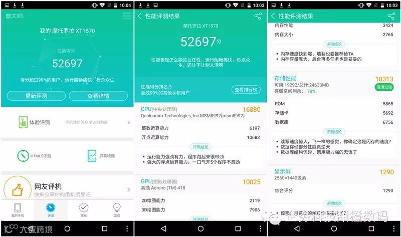 在Moto X Style国内版发布会后,曾有朋友问过笔者,这款手机所搭载的高通骁龙808六核处理器与2K屏幕的搭配组合,会不会令手机在图形处理和系统流畅度方面相比1080P分辨率屏幕的手机会差一些?特此笔者在本文性能评测部分作了跑分与系统运行流畅度测试。