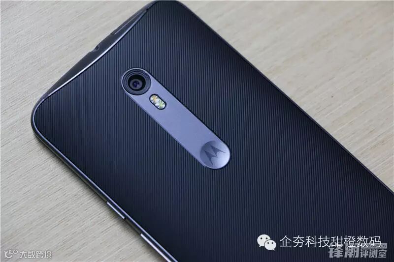 机身后背的设计细节比较巧妙,首先Moto X Style的后背一脱“大圆环”设计,在后背上部加入了垂直的金属条。同时后置摄像头陷入到后盖里以形成防跌落和防刮作用,摩托罗拉标志位置也有轻微的凹入形成用户手指放置的地方。