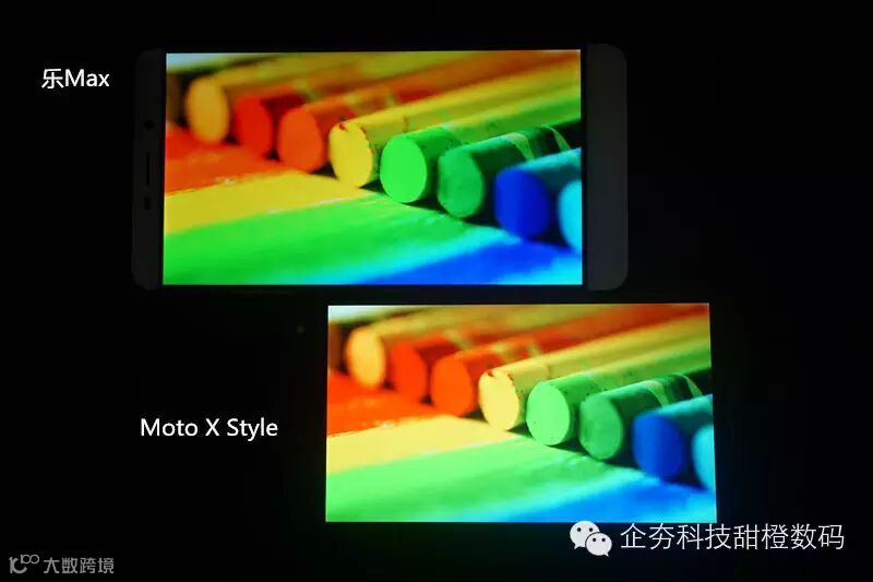 总体来看,Moto X Style的屏幕表现还算理想。与乐Max相比,Moto X Styley的色彩对比度更强,但整体色彩稍微偏黄。乐Max在绿、红色的显示表现要比Moto X Style更饱和深一些,两者在细腻度方面均有不错表现。