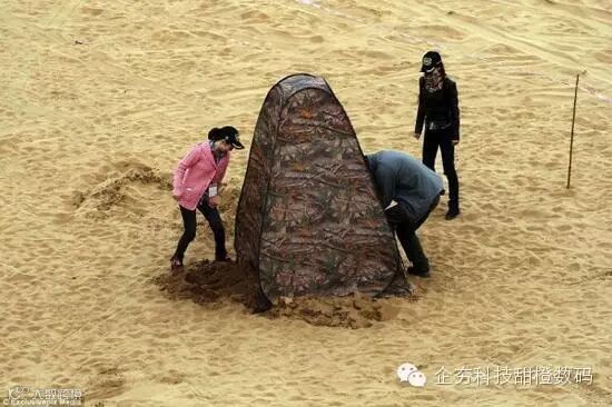 野外模式:在内蒙古阿拉善盟的沙漠中,人们搭建起一座厕所。