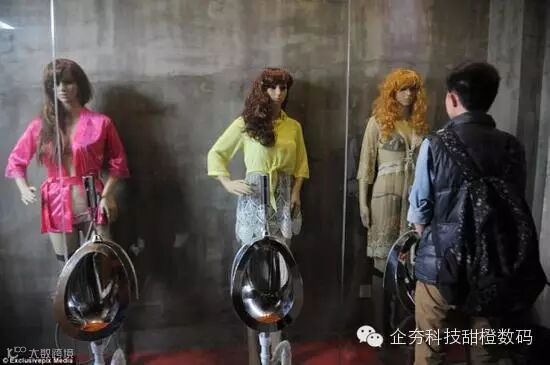 在山西省太原市的一家餐厅中,一名男子站在三个身着挑逗性服装的女人体模特前如厕。