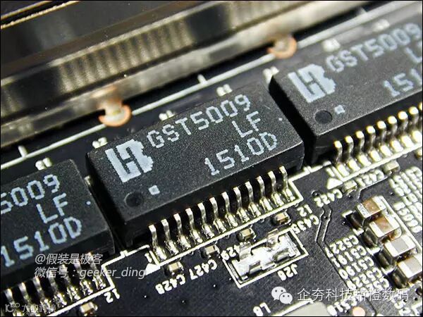 千兆网口旁边的GST5009是帛汉公司的千兆网络隔离变压器。除了传输数据外,变压吕还可以隔离不同设备间的电平,以防止不同电压通过网线传输损坏设备。