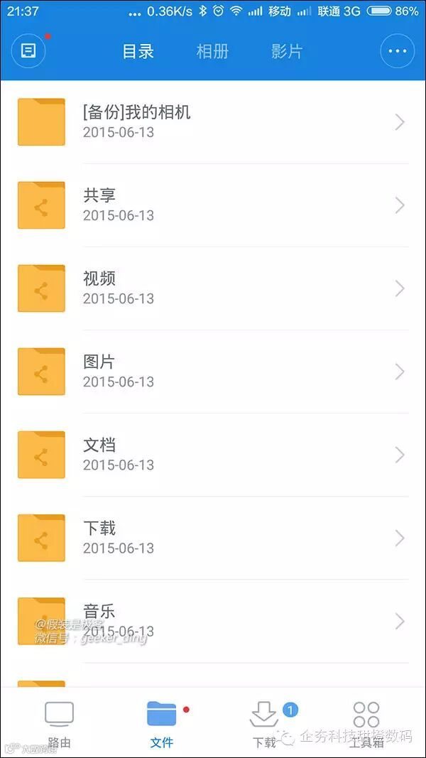 小米路由器的这项新功能满足了摄影发烧友的需求,由于要通过USB线进行备份,也更加印证了小米想让用户把他们的路由器一直放在桌子上使用的小心思。
