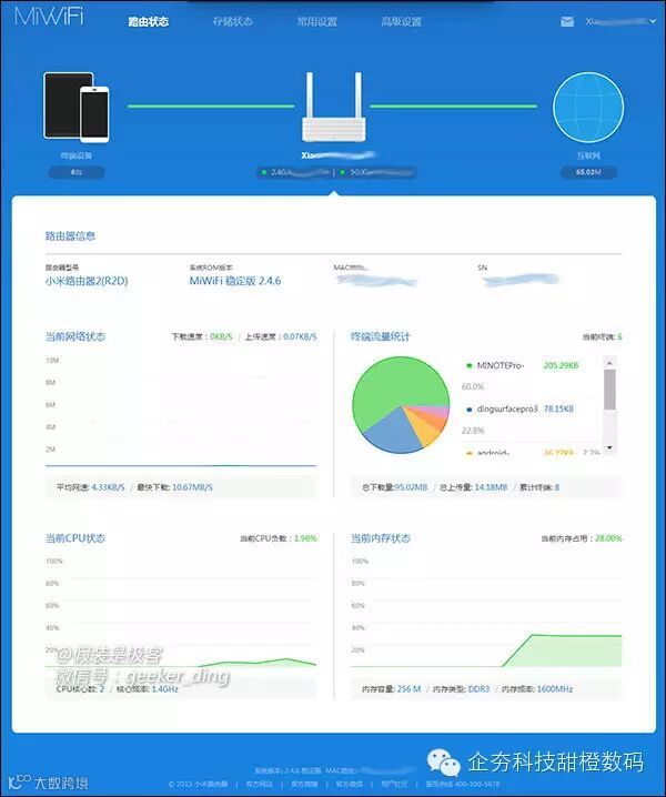 小米路由器的系统是在开源OpenWRT的基础上进行了定制。界面交互更加友好。经过几天的试用,《假装是极客》感受最深的是,小米路由的APP与小米系列硬件已经深度集成,如果是米粉,手里有更多小米产品,体验会更好。