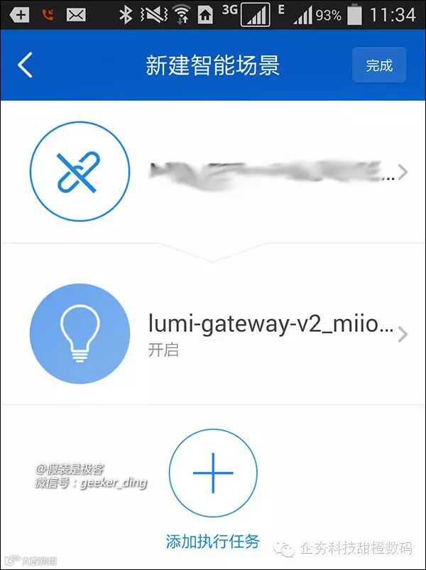这个图中,设置的是当某部手机不在路由器的范围或断开时,小米智能家庭网关自动开启,以触发家庭安防的功能。