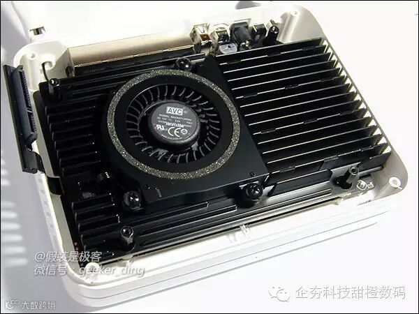 AVC涡轮风扇与散热器。与传统的散热风扇相比,涡轮风扇在更小的空间里可以输出更大的风量,提升散热效果。
