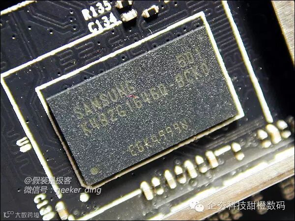 SPANSION飞索半导体的NAND闪存,型号是S34ML04G200TFI00,容量512MB 。这片闪存中保存了系统程序。老款小米路由使用的是SPI接口的闪存,容量为16MB。此前,《假装是极客》(微信号:geeker_ding)在路由器上遇到的系统闪存最高容量为32MB。使用大容量NAND闪存后有两个好处,一是相比SPI接口而言,NAND闪存的速度更快,这样系统的启动速度和程序相应速度会更快;二是使用大容量的闪存后,可以直接在系统中增加更多的功能、安装更多的程序,而不用将核心的数据放到外置存储中。