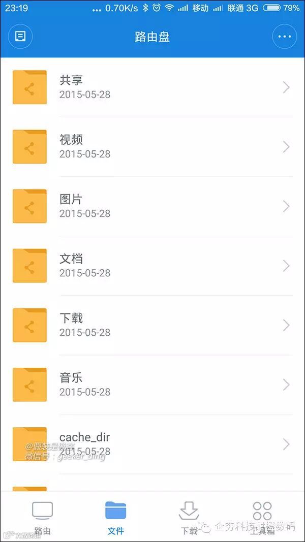 “文件”选项中可以查看路由器的各个文件目录并可以进行文件打开、播放视频等操作。