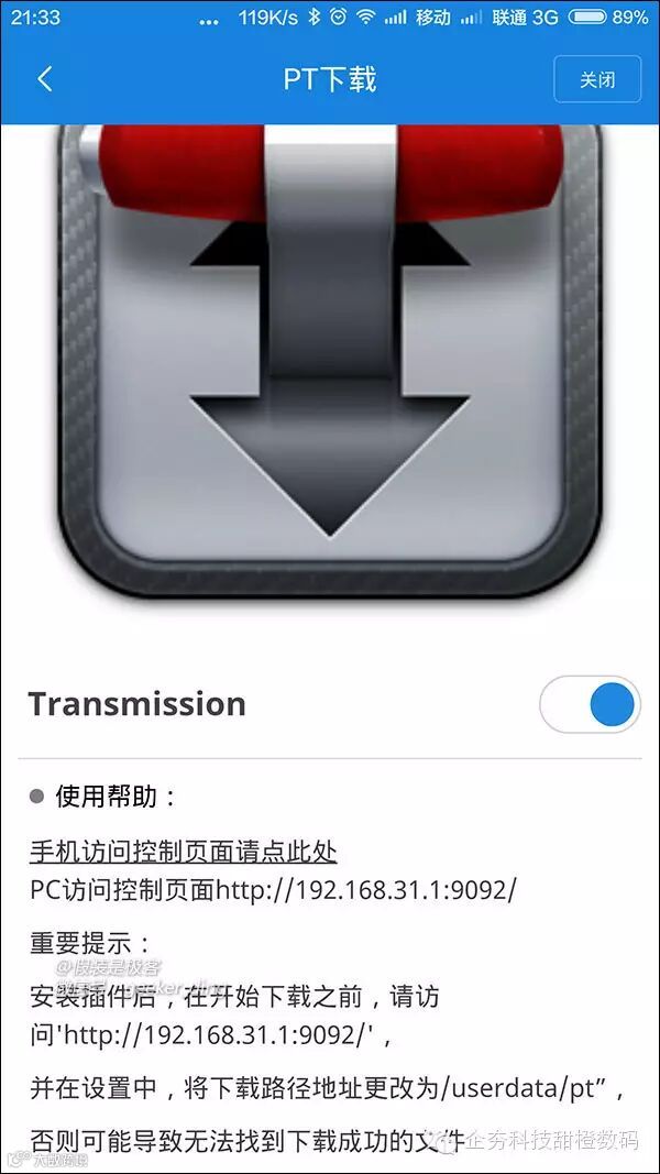 “工具箱”选项中提供了路由设备及其它多种扩展功能,可根据自己的需求设置。对于路由器玩家,还可以通过扩展菜单安装更多扩展APP,比如下载狂们用的Transmission工具等。